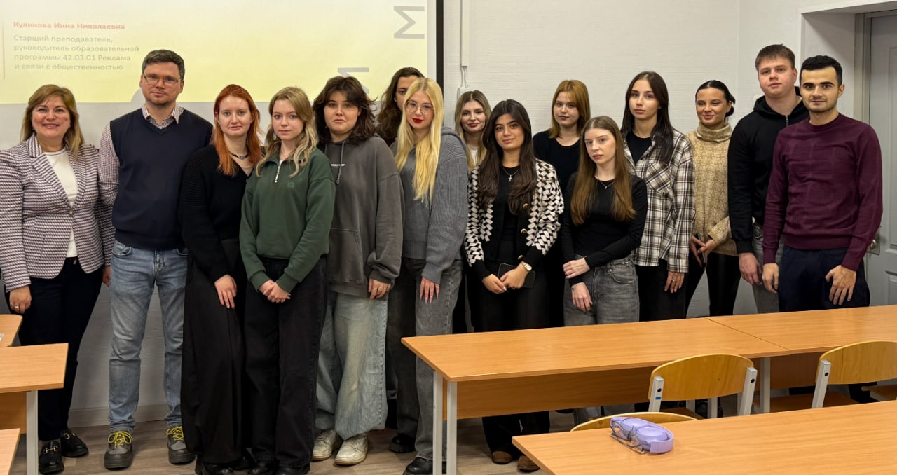 На занятии дисциплины «Организация и проведение PR-кампаний» две группы третьего курса направления Реклама и связи с общественностью получили возможность увидеть, как теоретические концепции работают на реальном рынке. Формат интерактивного занятия включал выступление приглашённого практика с творческим заданием, что позволило студентам заметить переход от абстракций к конкретным действиям.