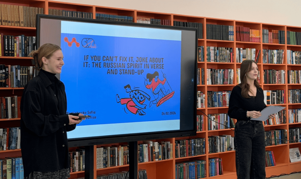 • Василиса Сарыкалина и Софья Масличенко представили тему синтеза поэзии и современного юмора, показав эволюцию русской смеховой культуры.